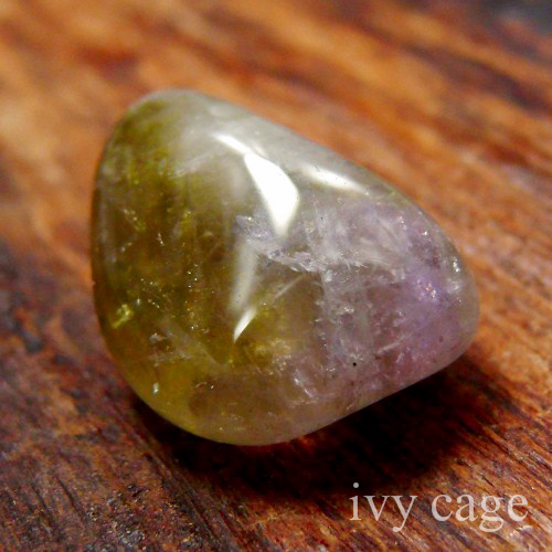 やや渋めのグリーンクォーツに、ラヴェンダーカラーのアメシスト部分が残っています。